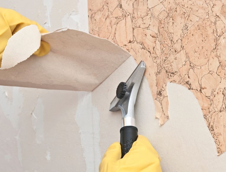 Steam/strip, skim-coat smooth, and hang new wallcoverings